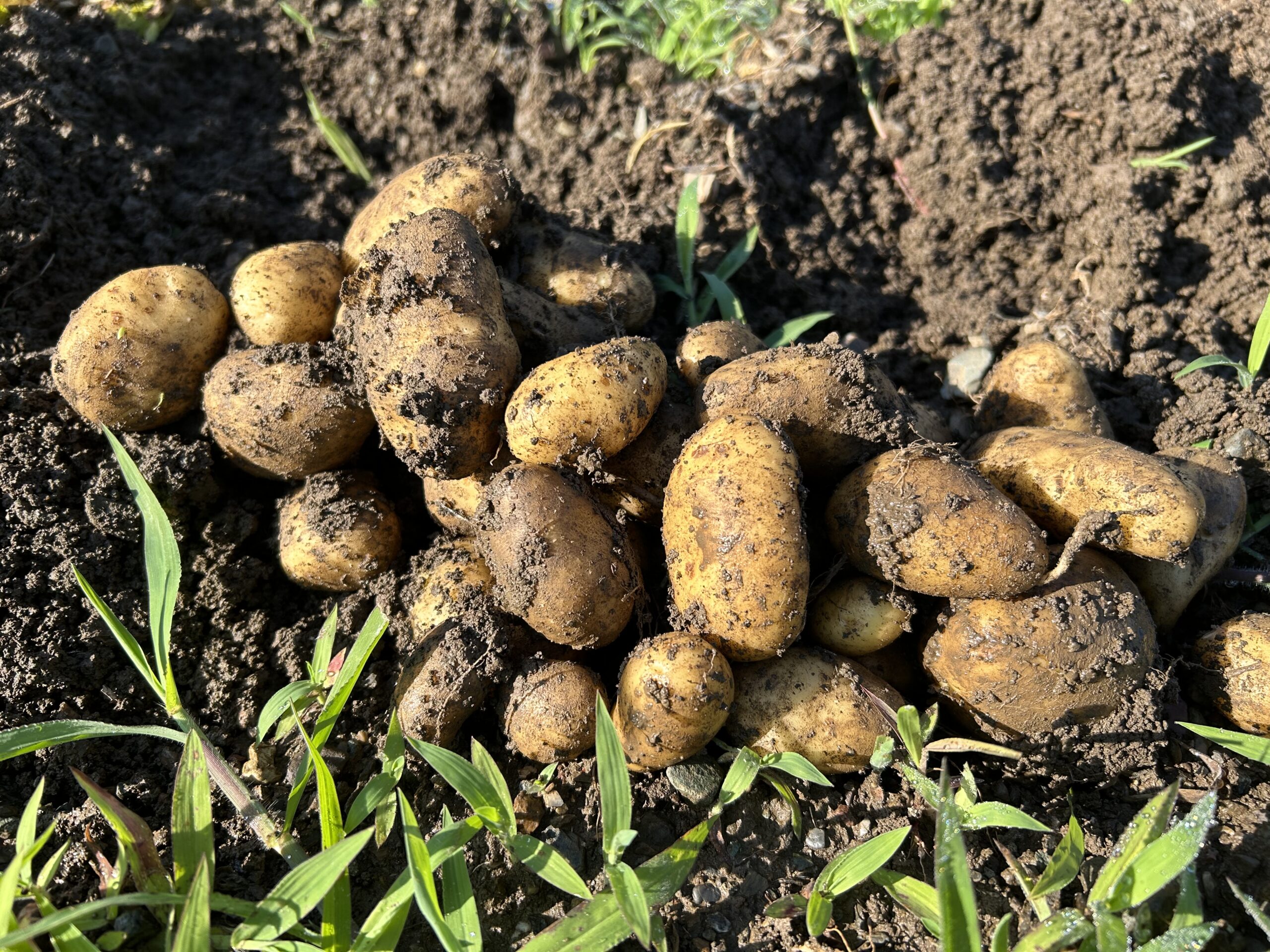 ジャガイモの植え付けは、霜の心配がなくなてから植え付けします。それから約2か月。こんなに立派なジャガイモができました。今年は、キタアカリを多めに作りましたので、甘みのあるおいしいジャガイモがたくさん採れました。