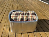 毛布で包んだものの側面のみ、アルミ保温シートでガードします